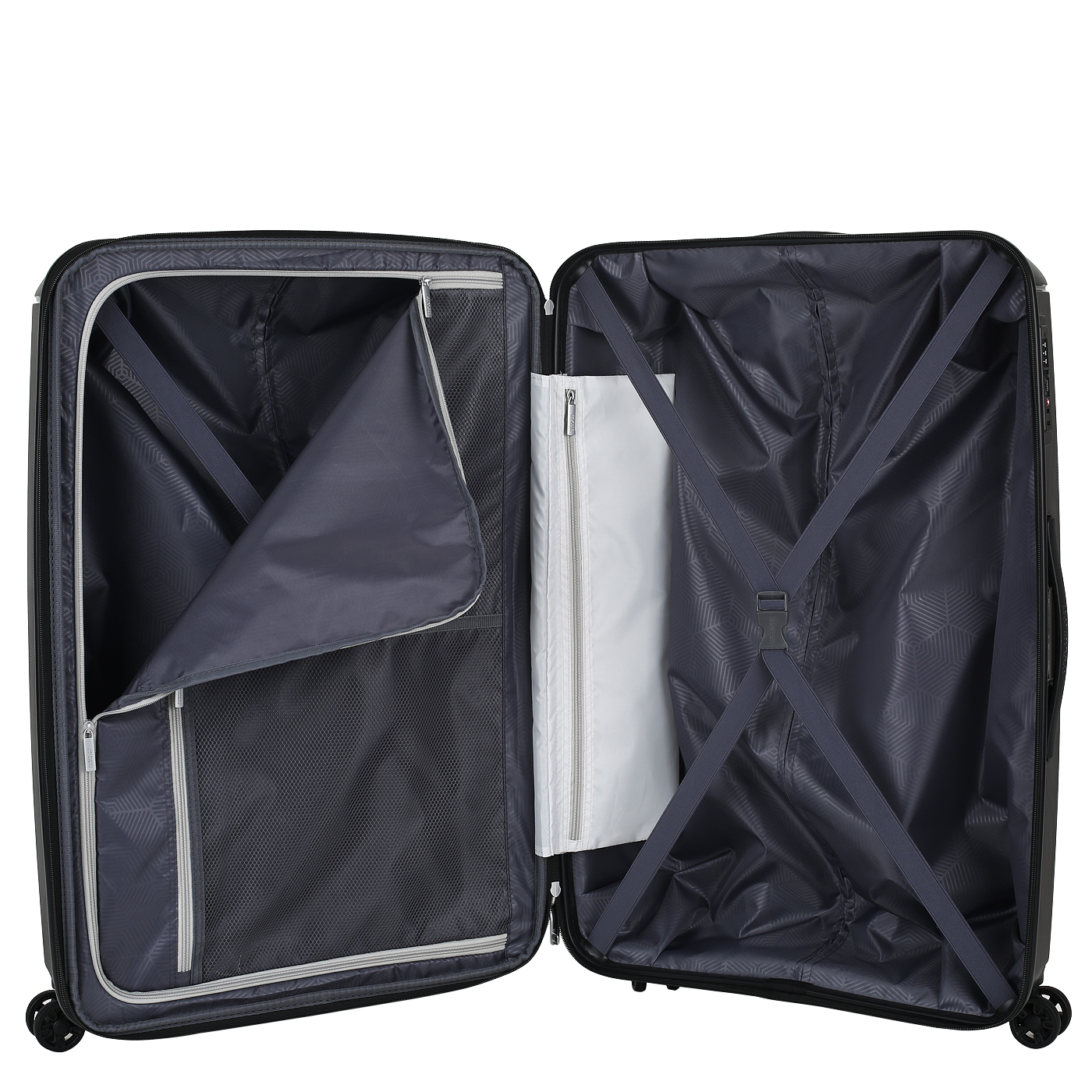 Комплектация: выдвижная ручка, прижимные фиксирующие ремни, встроенный кодовый замок с функцией TSA