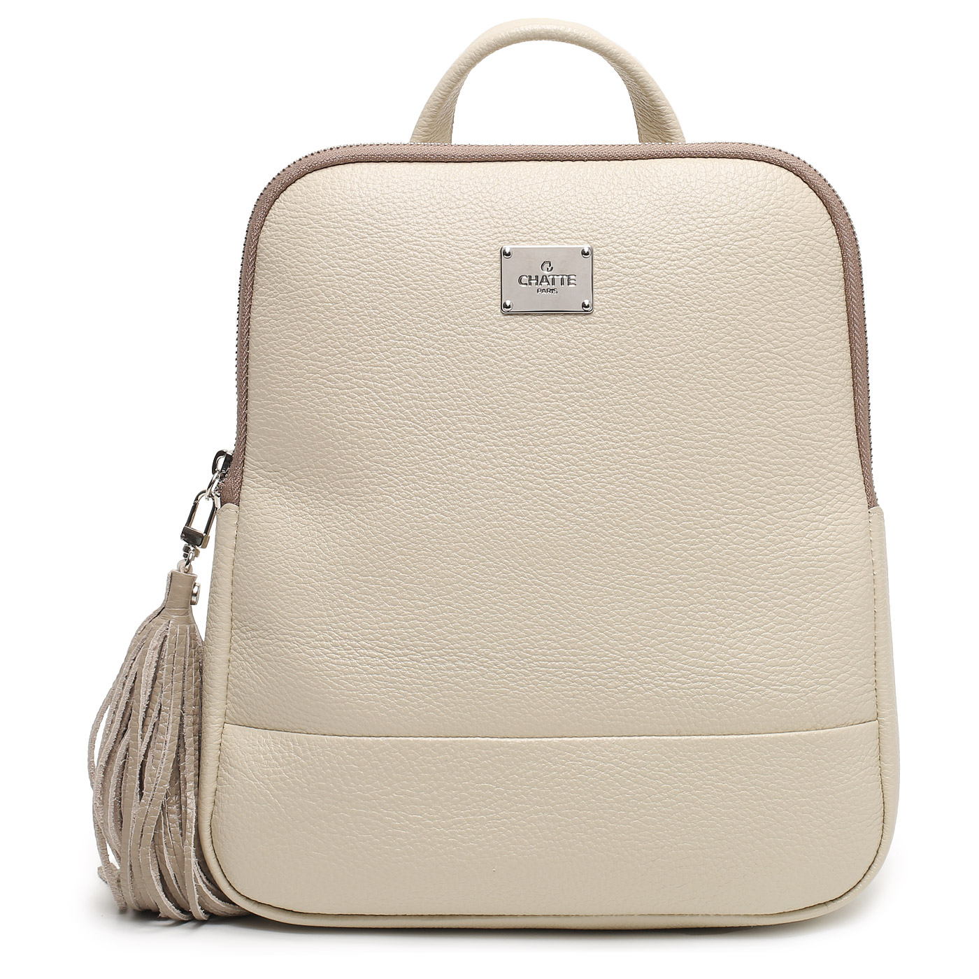 Оригинальный минималистичный дизайн этого стильного городского рюкзака обеспечит ему почетное место в гардеробе любой современной девушки. Аксессуар из прочной натуральной кожи кремового цвета закрывается на молнию. Внутри один просторный отдел на подкладке с тремя вместительными карманами — открытыми и на молнии. Длину плечевых лямок можно менять.