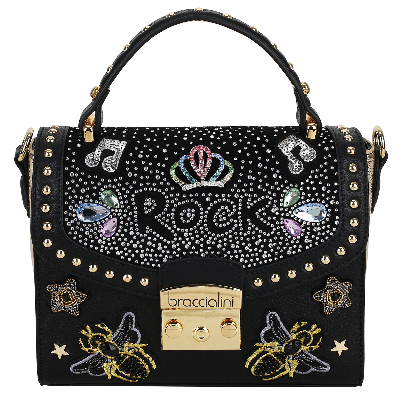 Сумка с ручкой Braccialini Rock B17421-YY_nero - 2000558517614 черный полиуретан, полиэстер 23 x 17,5 x 8 Цена 19940 руб. купить в интернет-магазине PanChemodan.ru в Воронеже