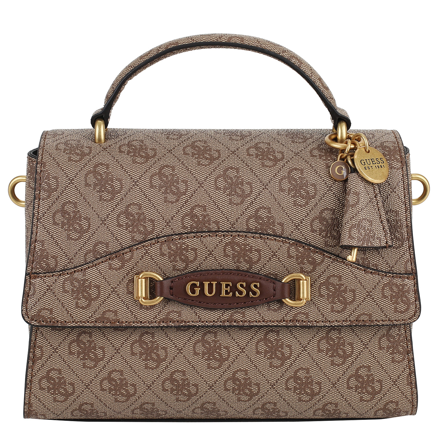 Сумка с ручкой Guess Emera HWBA93 16200_latte logo - 2000558647021 бежевый полиуретан 24 x 17 x 10,5 Цена 12180 руб. купить в интернет-магазине PanChemodan.ru в Воронеже